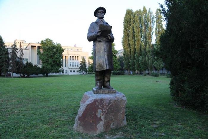 Бывшим ученикам на каждом углу города стоят бюсты и памятники. В основном, это грустные мужички, в тяжёлых и нелепых одёжках. С фантазией у местных скульпторов как-то не очень, такой себе кладбищенский дизайн. А с учетом, что на большинстве монументов под именами выставлены ещё и даты старта и финиша по жизни, то ассоциации с растянутым по городу кладбищем только усиливаются.