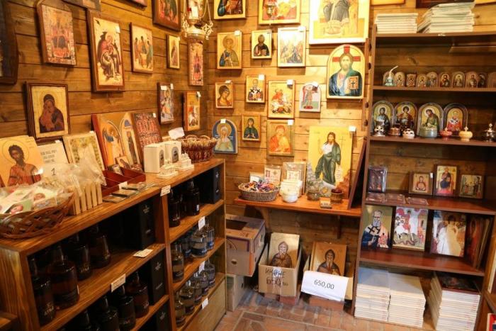 При монастыре и сейчас в продаже большой выбор смесей мёда.