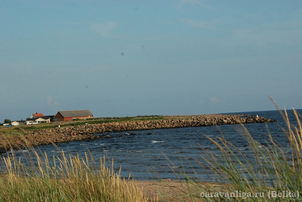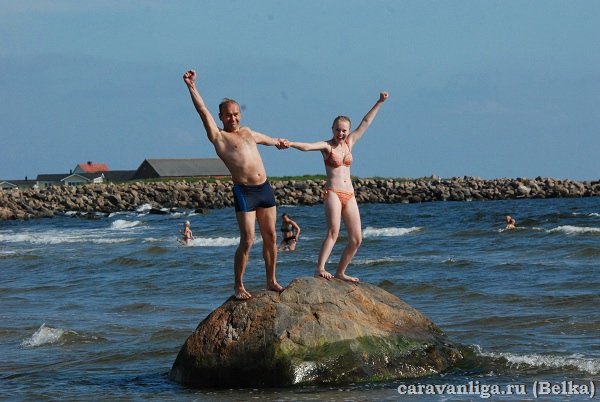 Очаровательное местечко с теплым и ласковым морем и песчаным пляжем оказалось небольшим курортным городком Швеции, куда, судя по всему, по профсоюзным путевкам съезжаются многие отпускники этой скандинавской страны. Место стоянки было оборудовано не только ровной площадкой, но и вполне цивильным туалетом + наружным краном с водой. На пляже можно воспользоваться летним душем с холодной водой.
