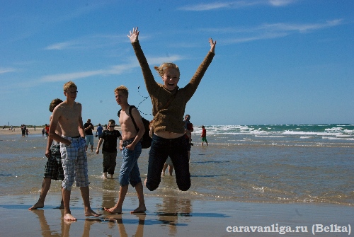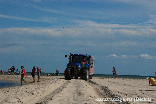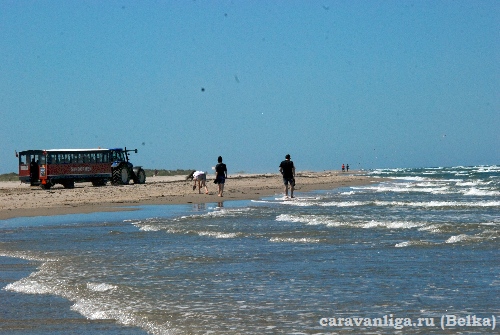а сами поехали наслаждаться слиянием двух морей Северного и Балтийского. В точку, где соединяются в единое целое два пролива Скагеррак и Каттегат мы добрались за небольшую плату на курсирующем здесь автобусе , который прицеплен к трактору.