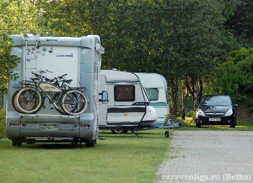 Место для стоянки и ночевки мы выбрали вдоль дороги на стриженном газоне со знаком «Р».