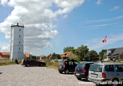 Там же, в замечательном городке Скаген, рядом с местом нашей парковкой, находилась реконструкция одного из первых маяков построенных в 1627 году. Эта реконструкция стоит на небольшом холме, так же как и когда-то стоял оригинал. Первоначально корзина маяка наполнялась древесиной, которую сжигали всю ночь. Зачастую, деревянная конструкция служила причиной для беспокойства по причине подъема высокого пламени в воздух и позже стали использовать уголь.