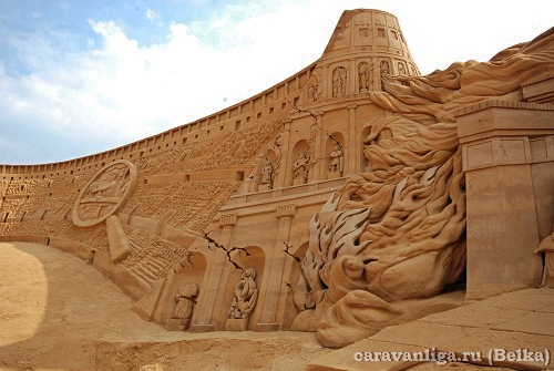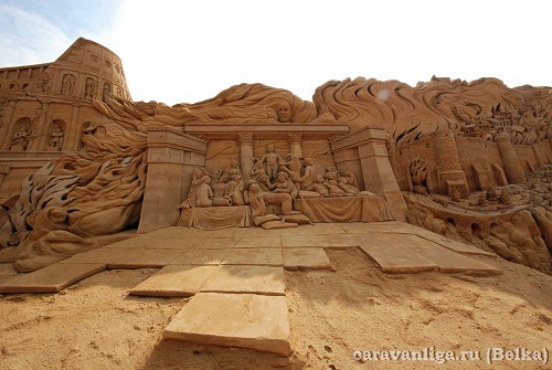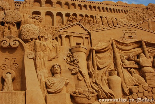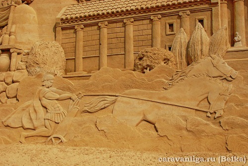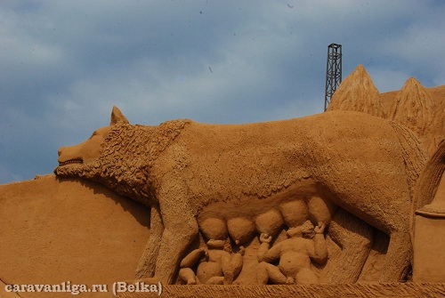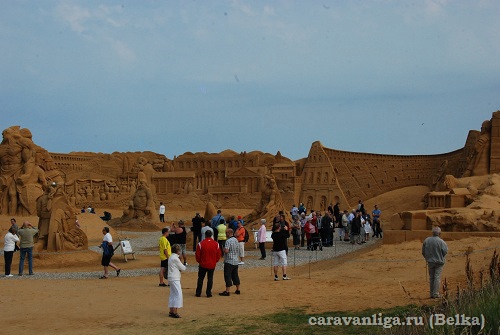 Остановились в небольшом городке где побывали на фестивале песочной скульптуры Римской империи и ее правителей, прокатились по улочкам этого городка на велосипедах, заскочили в магазин и поехали дальше.