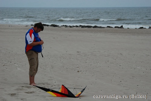 Этим же вечером тучи над нами снова стали сгущаться и снова зарядил дождик. Правда до того, как он начался, мы успели посетить дюны, пляж и попытаться запустить змея. Правда навыков нам так и не хватило :(
