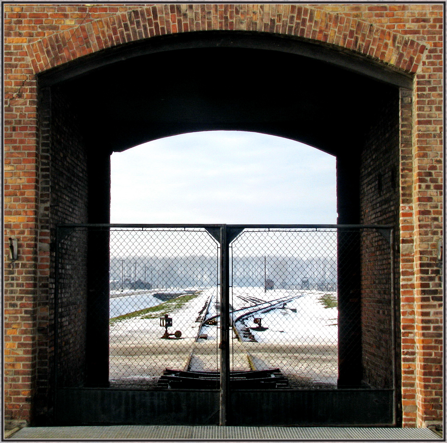 Главные ворота лагеря Биркенау (Аушвиц 2). Через эти ворота привозили всех заключённых…