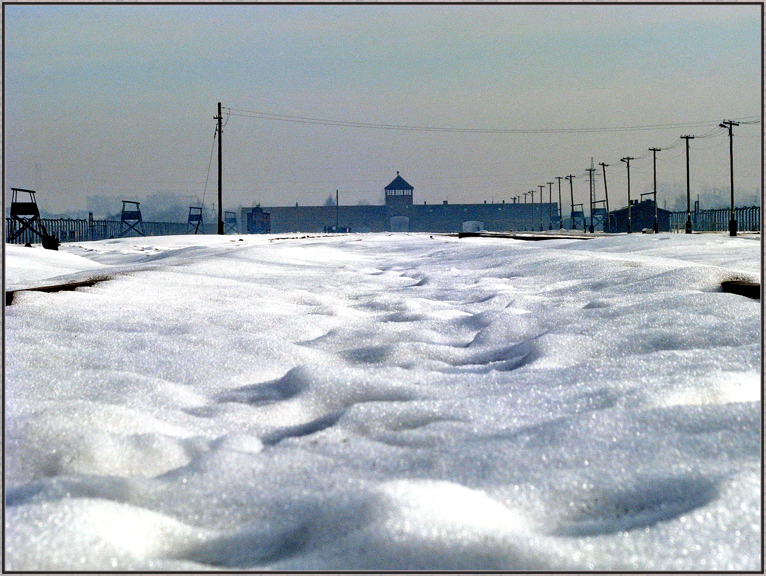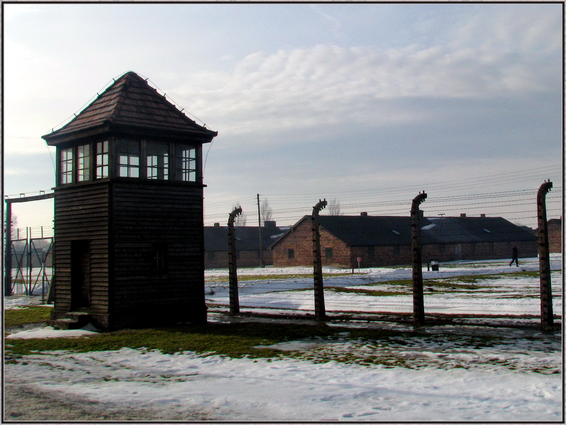 Сторожевые вышки как и проволока по всему периметру лагеря…