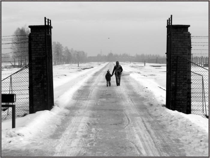 Женщина с ребёнком в месте где погибли миллионы людей смотрится загадочно что ли…