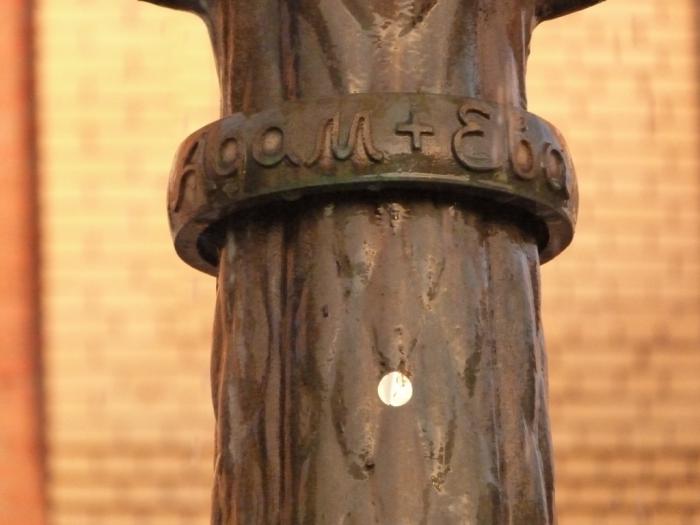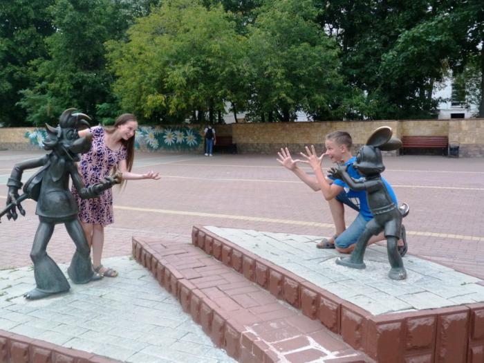 Всё это творчество здешнего скульптора Ершова. Он же автор более спорной композиции, которая официально называется «Сотворение мира», хотя подписана более прямолинейно: