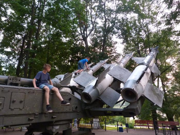Сказывается, наверное, то, что когда-то это было частью богатой усадьбы князей Волконских со своим зверинцем, мостиками, беседками и скульптурами. Тут еще остались вековые липы и редкие деревья, высаженные княжескими крепостными. Усадебный дом спалили сразу после революции, от дворянской роскоши и «излишеств» на территории тоже ничего не уцелело. Парк оснастили обычными для таких мест народными развлекаловками, аттракционами и прочим. А относительно недавно, в 2002 году, создали экспозицию современной военной техники.