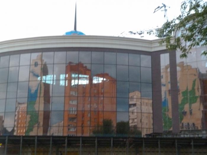 Возвращаясь к машине, любуемся причудливыми отражениями новых домов в зеркальных гранях офисного здания.