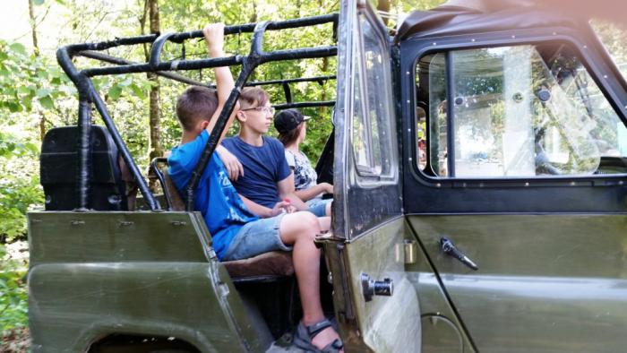 … но я решил доплатить еще 400 рублей, чтобы нас вывезли на джипе. Обычно, курортный джиппинг стоит непомерно дорого, а тут — и ребятам удовольствие, и время экономим.