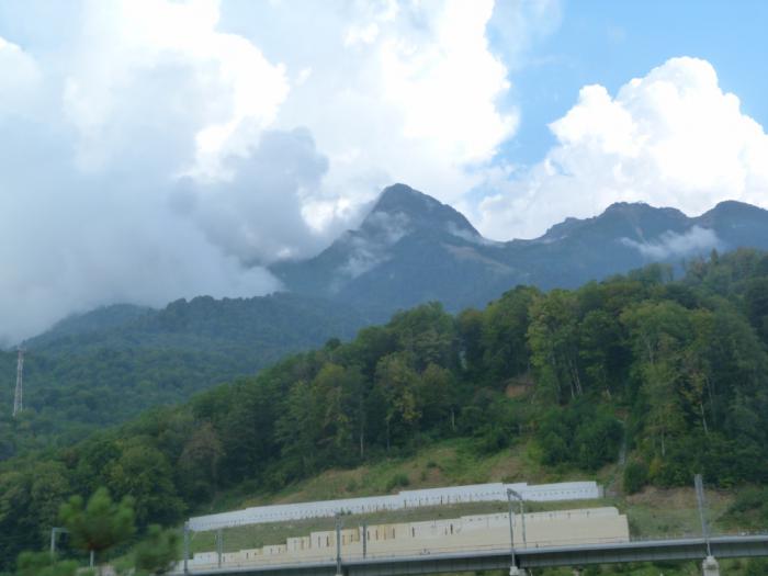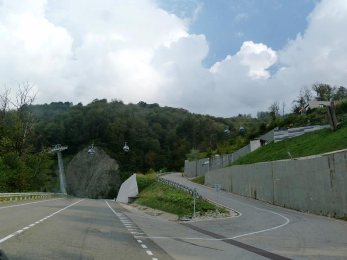 Вскоре, немного потолкавшись в пробках, мы уже из Адлера по новехонькой трассе мчимся в горы. За полчаса доезжаем до Красной Поляны.