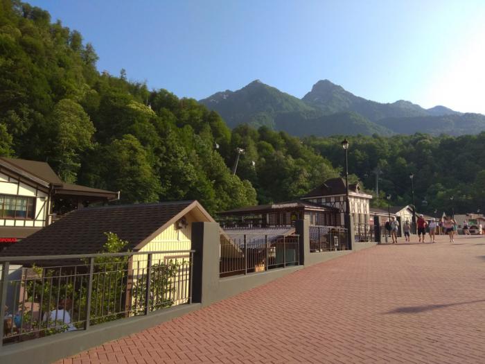 В частности, повезли нас и на Розу-Хутор. Дело было в жарком июне, но я, на всякий случай, утеплился. Горы всё-таки… мне объяснили, что это я зря: наверх нас никто не повезет, только до Олимпийской деревни, а там такая же теплынь, как и внизу. Ну и ладно. По дороге в автобусе нам рассказали про местные племена убыхов, которых еще при царе депортировали в Турцию, где последний из не ассимилировавшихся представителей этого народа умер в 2005 году. Про то, как греческие переселенцы, увидев с перевала это очаровательное место, назвали его «красной» (т.е. красивой) поляной. Как пришли сюда, в Красную Поляну, 36 эстонских семей, а потом, после выселения убыхов, начали строить свои хутора наособь, положив тем самым начало н/п Эстосадок — «эстонский поселок». Один из хуторов принадлежал семье Роаз, что потом и послужило поводом обозначить будущий горнолыжный курорт именем цветка. В общем, было не скучно.