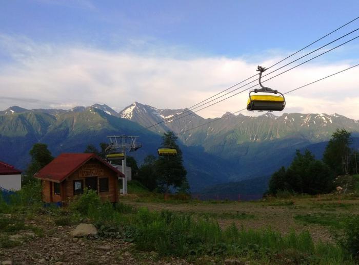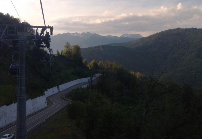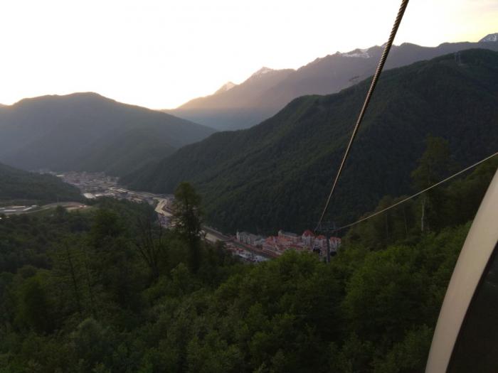 Кругом горы, над головами в разных направлениях проплывают вагончики канатки, лепота…