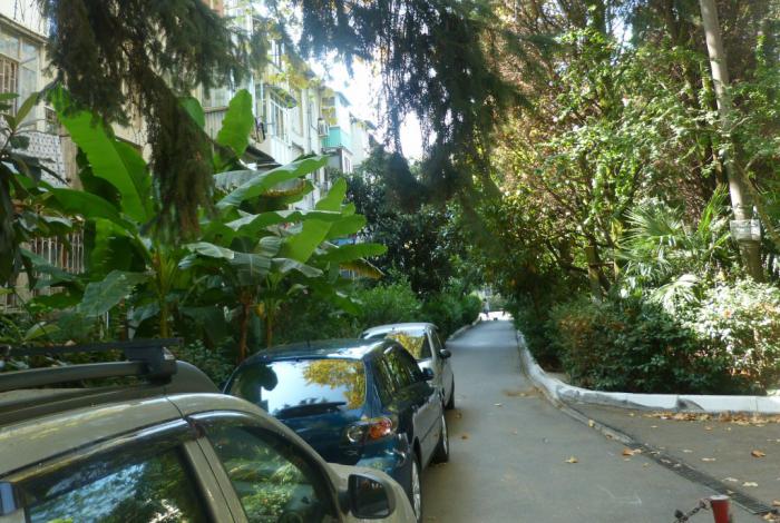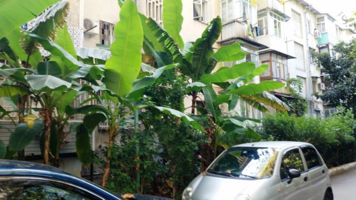 Сильные впечатления от единственного субтропического города нашей страны начались еще возле дома наших хозяев. Дом-то был самой обычной на вид хрущевкой, с тесными лестничными площадками, где трудно открыть двери сразу двух квартир, с возможностью круглосуточно наслаждаться аудиоспектаклем «что там делается у соседей» и прочими прелестями таких зданий. Разве что подъезд был непривычно «дырявым». Не прохудившимся, а сознательно построенным «в крупную дырочку». Никакой теплоизоляции, обязательной в наших краях.