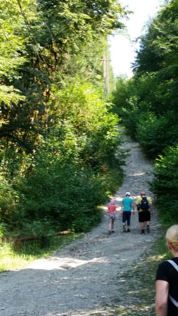 Так уж получилось, что за всю нашу поездку дождь нас ни разу не поливал. Да и вообще лето было на удивление сухое, даже в вечно сыром Санкт-Петербурге. Неожиданный ливень, обрушившийся на нас в горах, дети восприняли как что-то небывалое. В своем видео-отчёте сын Артем прокомментировал эти кадры словами: «Ааа! Что происходит?! Почему с неба льется вода???»