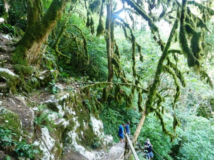Это лишь присказка. Сказка начинается, когда с проезжей для джипов дороги мы сворачиваем на тропу, довольно круто ведущую вниз. Дорожка безопасна, и идти по ней не сложно, но лес вокруг — совершенно сказочный. Всякое ворчание прекращается, дети борются лишь за фотоаппарат, чтобы лично сделать снимок этих джунглей.