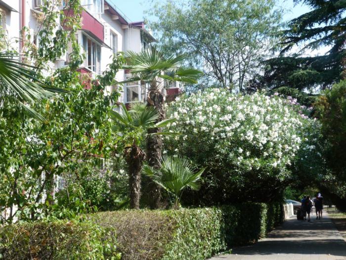 Утром собравшись и тепло простившись с гостеприимной семьёй, приютившей нас в Сочи, мы отправились грузиться в свою «баржу». Заодно бросили прощальный взгляд на цветочное великолепие, окружающие обычный жилой дом.