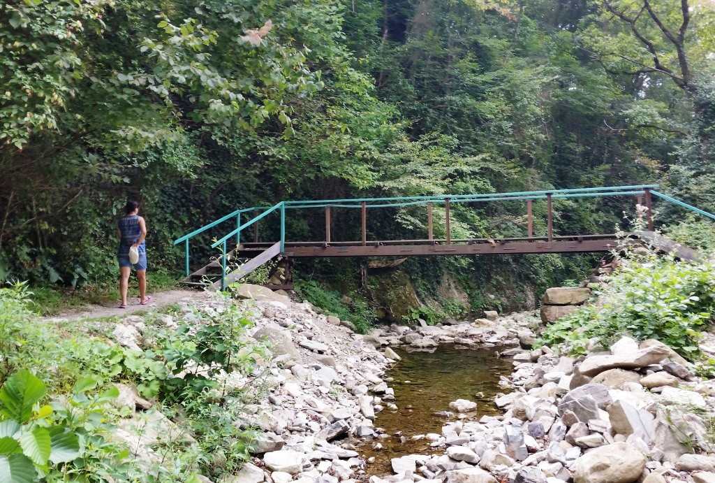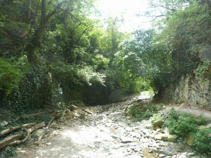 И пусть он не слишком впечатляет полноводностью в августе, но зато в такую жару очень приятно прогуляться босиком по воде, укрыться от палящего солнца в таинственном полумраке ущелья, подышать пьянящим предгорным воздухом.