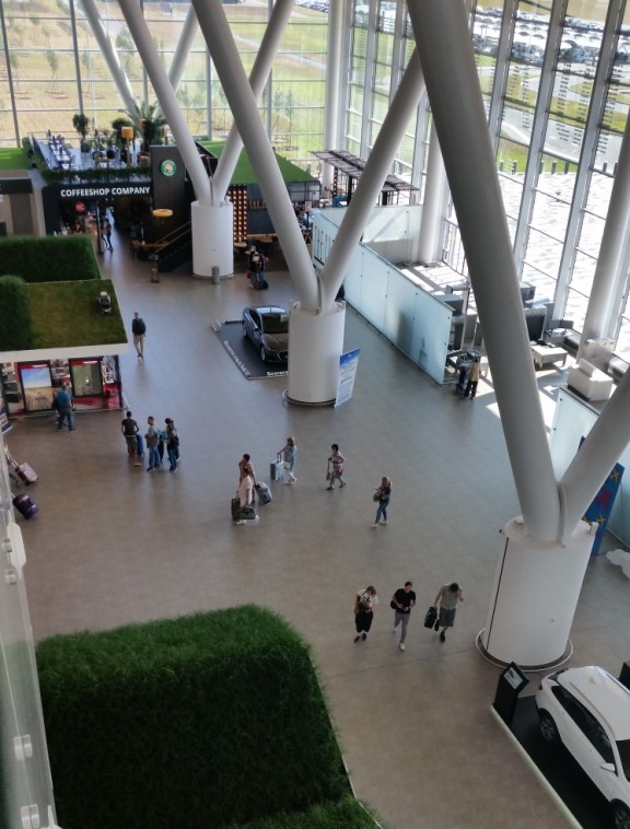 Прежде чем продолжить наше путешествие домой, надо было отправить Аню с малышкой самолетом. В 9 утра мы всё еще большой оравой покинули квартиру и направились в сторону нового ростовского аэропорта. Вокруг расстилались поля с арбузными и дынными бахчами, у дороги их продавали только что срезанными. За полчаса мы добрались до аэропорта Платов и вскоре уже прощались с нашими курортницами. Зойка торжественно пообещала махать нам рукой с самолета и, действительно, весь полёт выглядывала нашу машину в иллюминаторе.