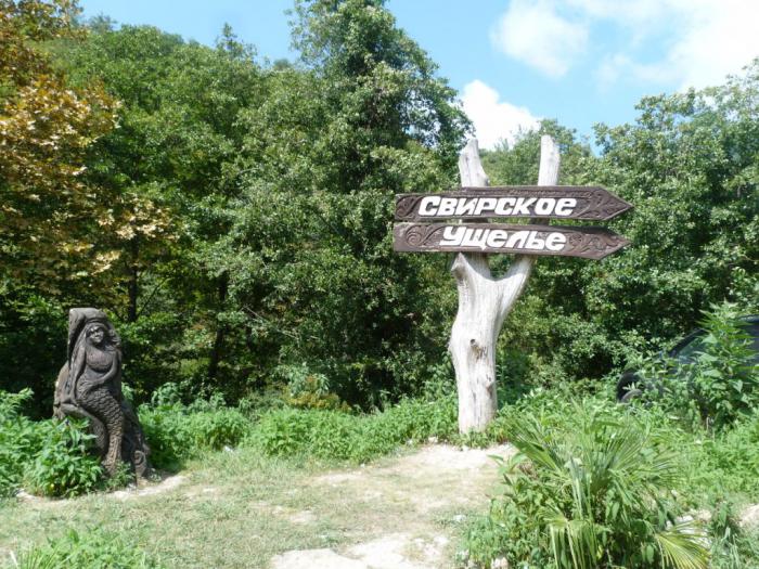 Наконец, в 12:30, мы решаем, что этак день и вовсе без прогулок и развлечений пройдет. Есть тут, недалеко от шоссе, Свирское ущелье. Хвалят его сдержанно, но зато оно близко и много времени занять не должно. Поворачиваем по указателю и странными гаражно-огородными дорожками добираемся до входа.