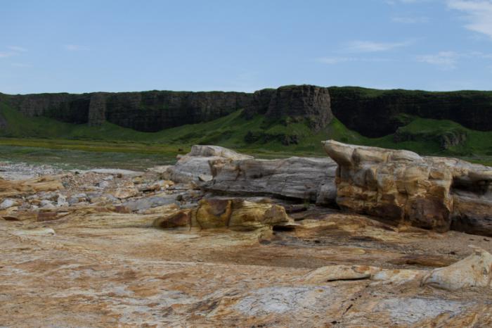 Инопланетные эрозийные пейзажи, каньон, тюлени в море, периодически там видят косаток.