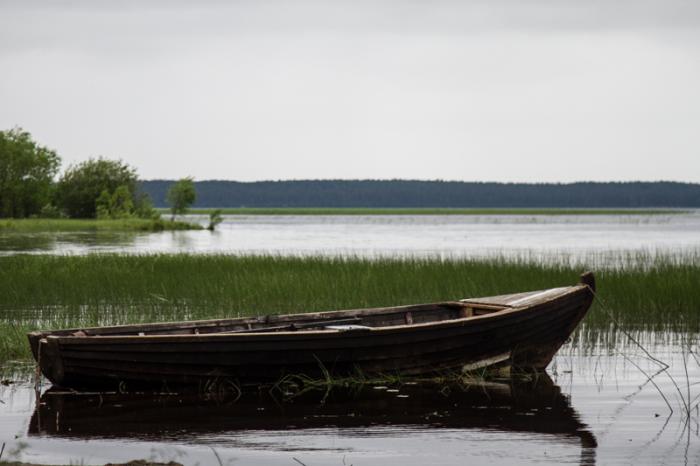 Один из поворотов «наугад» закончился Онежским озером, слева Челмужская коса