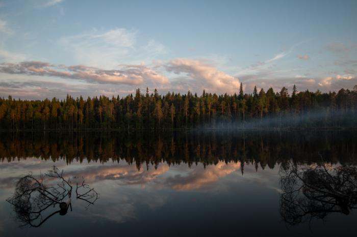 Вторую ночевку мы присмотрели на реке Кузёма, красиво и тихо.