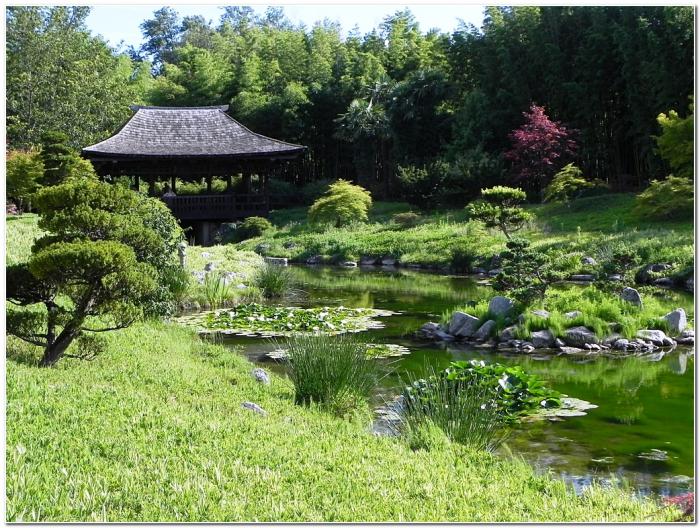 Помимо зарослей бамбука, в этом саду представлены пальмы, магнолии, секвойи, водные растения,