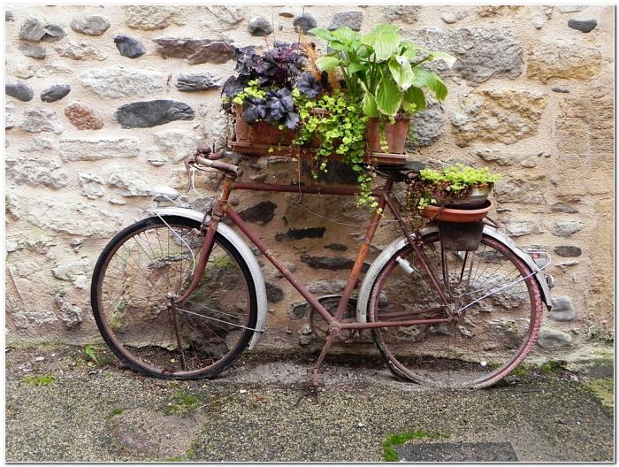Которого? В первом случае — Дордонь, во втором — Аверон) Хотя, конечно, там везде «помешаны» на великах. Те, кому не хватило каяков, чуть ли не толпами катят на великах. Ну, а отслуживший аппарат можно и креативно украсить цветами)
