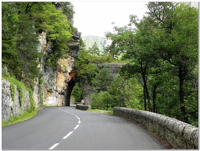 фотографии арок (или тоннелей), через которые идет дорога по каньону реки Тарн;