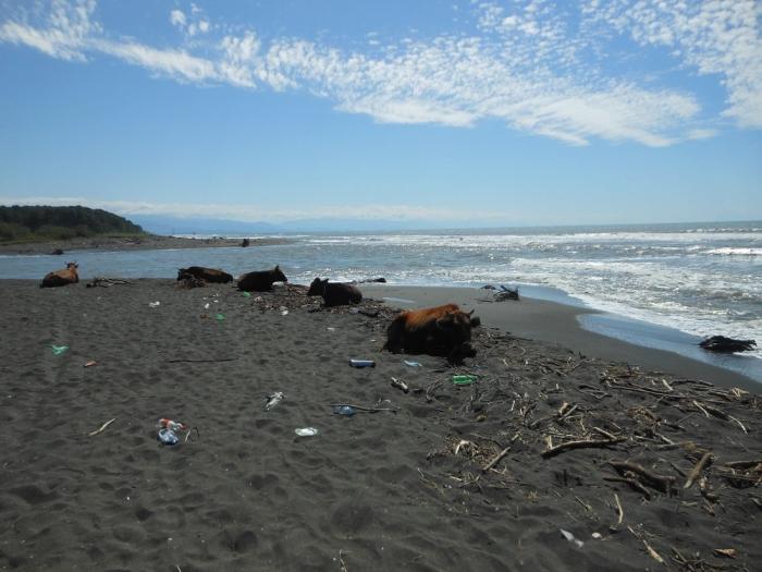 Саша с Наной прогулялись в один конец пляжа, а мы пошли на другой. Насобирали ракушек, а в самом дальнем конце пляжа, далеко после загорающих людей, наткнулись на других «отдыхающих»: