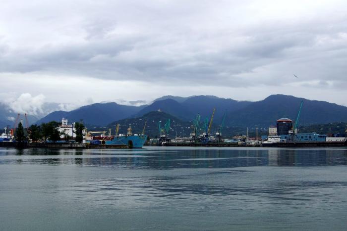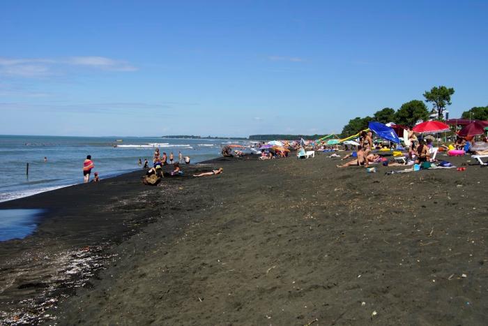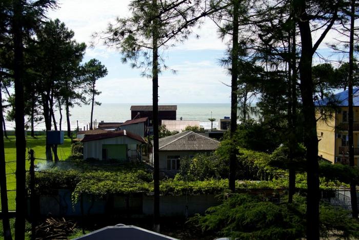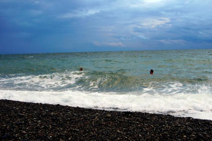 Километры в горах наматываются на колёса совсем не так, как мы привыкли на равнине, поэтому каких-то 200 км от Ахалцихе до моря у нас заняли всю вторую половину дня, и в поселок Уреки мы приехали уже поздним вечером. Опять же с помощью таксиста устроились в отель на второй линии, метрах в 100 от моря.