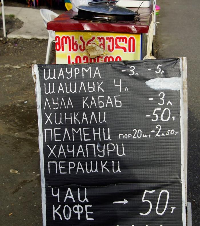 Заметили на рекламных объявлениях несколько забавных грузинских «очепяток» на русском языке. Сразу вспомнился «бородатый» анекдот: «Сол, фасол, вермишел пишется с мягким знаком, а вилька, ложька, тарелька – без мягкого знака». ))
