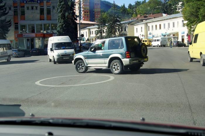 На трассе у грузинских водителей тоже очень интересный стиль вождения – многие никуда не торопятся, едут либо в левой полосе, либо ровно посередине двух полос со скоростью 40-50-60 км/ч, высунув левую руку в окно и наслаждаясь обдувающим их ветерком. Но стоит его обогнать, как тут же начинается «кровная месть». )))