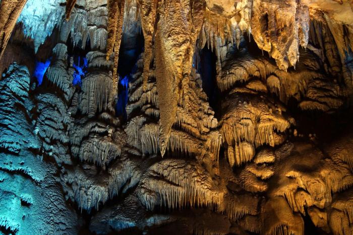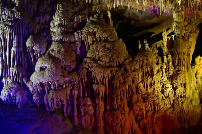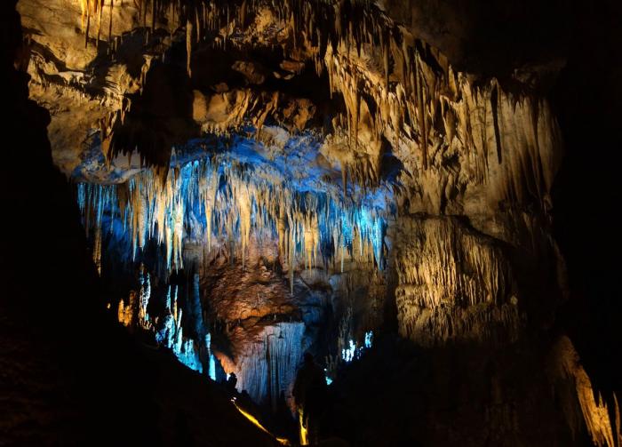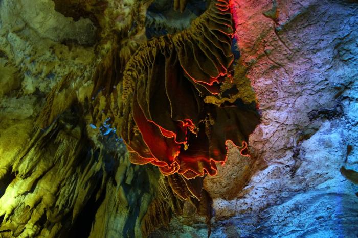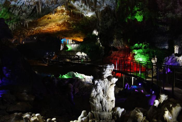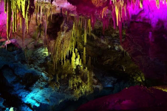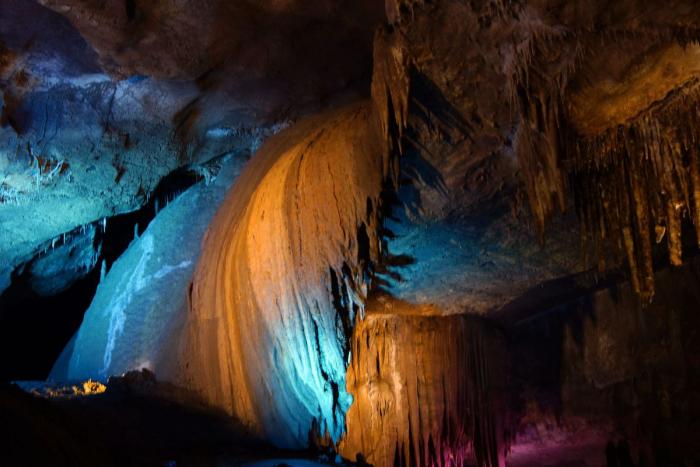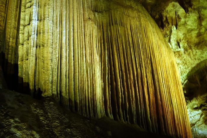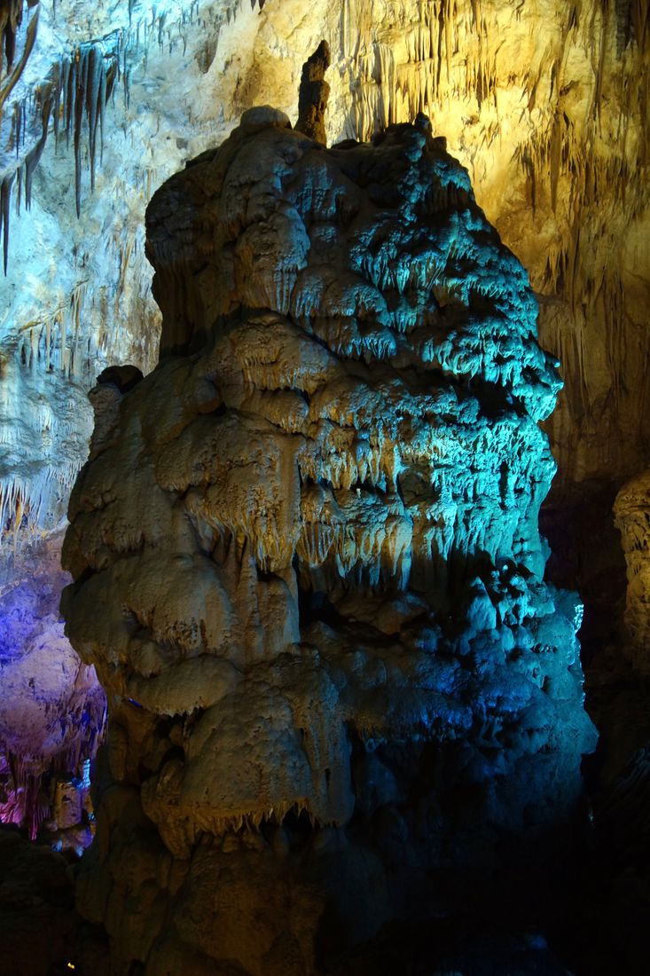 Полтора километра пешком по коридорам и залам с причудливыми сталактитами, сталагмитами и сталагнатами, выгодно и умело подсвеченными для придания естественным формам ещё большей красоты. Мне показалось, что некоторые залы по размерам не уступают небольшим стадионам. Там бы задержаться подольше, но гиды постоянно подгоняют, освобождая путь для следующей группы, и не дают в полной мере насладиться подземным великолепием природы.