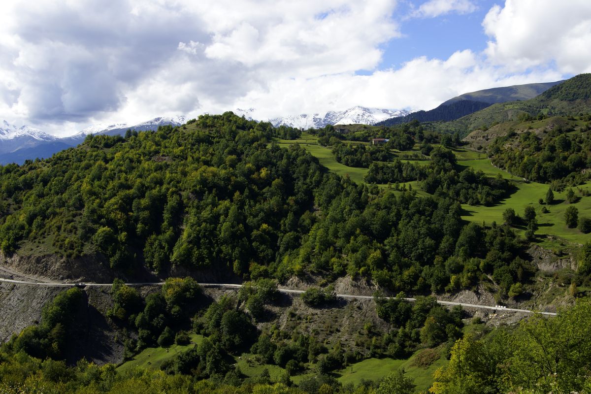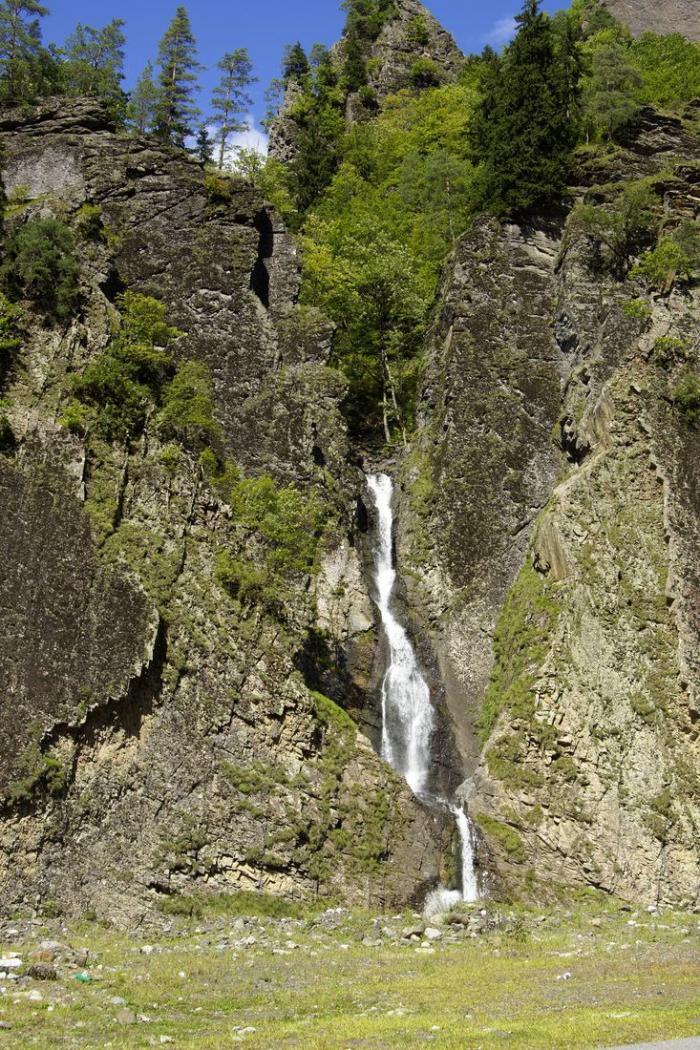 У обвала простояли ещё 40 минут, пока нам не разрешили проехать. За это время машин набралась целая колонна. Но мы всё-таки успели до темноты спуститься с гор в долину. За это время несколько раз убедились, что в Грузии даже коровы — и те горные. Жалко, что не успели сфотографировать, как буренки стоят на задних ногах в двух-трех метрах от земли на почти отвесной скале и тянутся вверх за травой.