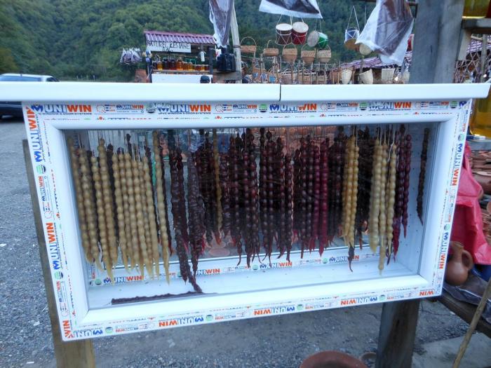 От пещеры направились в сторону границы. На одном из придорожных глиняных мини-рынков купили домой сувениры и чурчхелу разных видов.