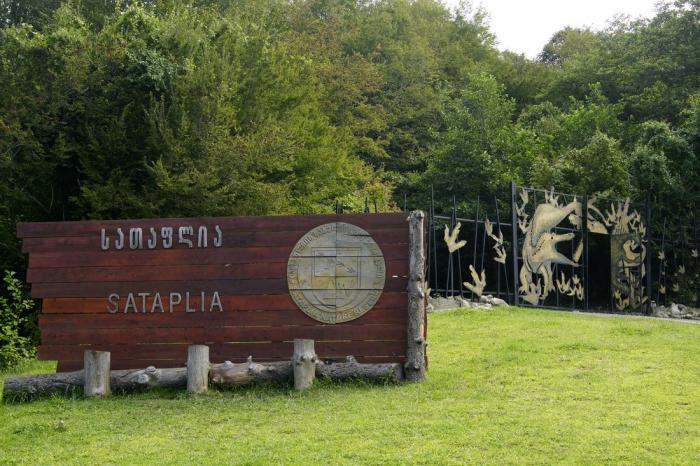 И там, и там посещения возможны только группой в сопровождении гида. В парке Сатаплиа (координаты 42°18'34.9” C 42°40'15.7” В, работает с 10 до 18, группы запускаются каждые полчаса, последняя группа в 17 часов, билет 6 лари, студенческий – 3 лари, дети до 7 лет – бесплатно) гид показывает отпечатки лап динозавров на скалах…