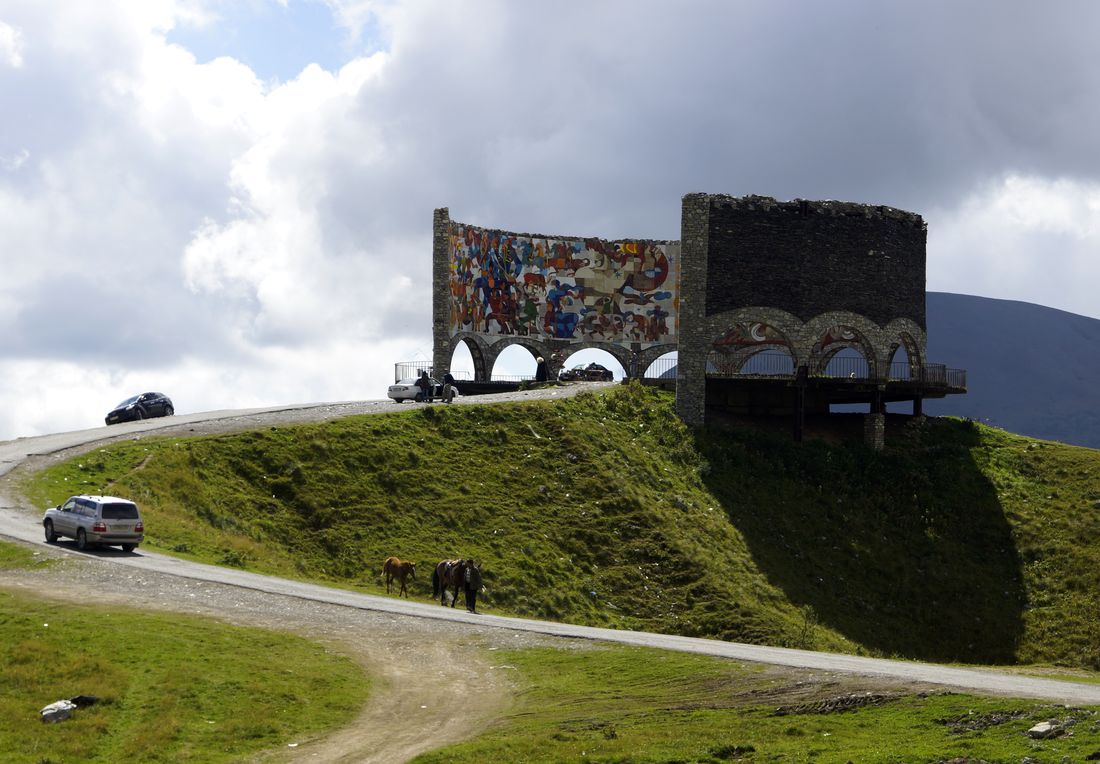 Позавтракали и направились на таможню. В этот раз погода была ясная, так что арку Дружбы мы заметили и подъехали к ней на фотосессию.