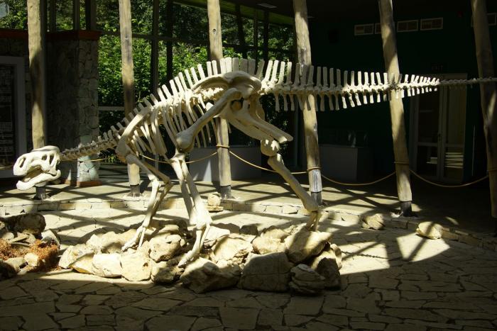 Дальше самостоятельно можно посетить небольшой музей со скелетом динозавра…