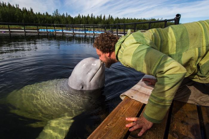В Нильмогубу мы заехали не случайно, тут можно пообщаться с дельфинами-белухами, которых изучают в научном центре. В прошлом году это было семь сотен, нынче девять сотен рублей с человека, признаюсь, меня люто душила жаба.