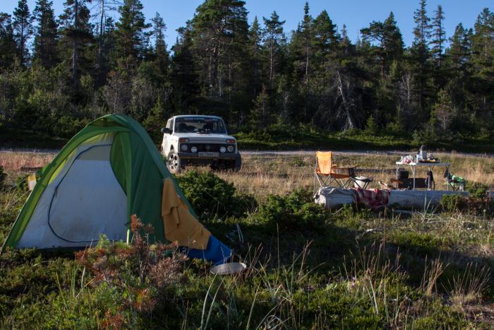 Вдоволь нагулявшись, поехали к Шальскому, и то ли сказался муторный перегон, то –ли резко сменившаяся в Карелии погода, но меня жутко начало рубить на сон. Я ехал, закусив губу, красный от злости на себя за то, что не могу справиться с собственным организмом, он просто отказывался бодрствовать. Никакие практики дыхания, известные мне еще с тех времен, когда нас обучали поиску и включению резервного состояния на Карате, не помогали. Вспышки ярости на собственную беспомощность возвращали к жизни сознание, но как только я переставал злиться, всё вокруг покрывалось пеленой. Как только мы доехали до точки стоянки, я повернул ключ в состояние off и отключился. Сидя в кресле, с рулем в руках, я спал минут пять, прям так как уперся в стоянку. Наверное, это может оправдать то, что мы не пошли на Бесов нос утром следующего дня. Сейчас я понимаю, дождь нас не остановил бы, просто нужно было восстановиться и день ничего не делать. Мне наука: полторы недели шпарить без отдыха и дневок жестоко. Как бы не хотелось посмотреть всё и везде, один раз в неделю нужно просто отдохнуть. Здесь нужно сказать, что режим был довольно жестким с первого дня, подъемы в пять, самое позднее в шесть утра, отбой в одиннадцать, полная занятость. Водитель рулит, штурман прокладывает лоцию, вышли –либо поперлись в горы/леса/крепостные стены, либо обустройство лагеря, готовка, сушка, хозяйство, мытьё. Как бы хотелось застрять лет на двадцать в себе двадцатилетнем, но не выходит.