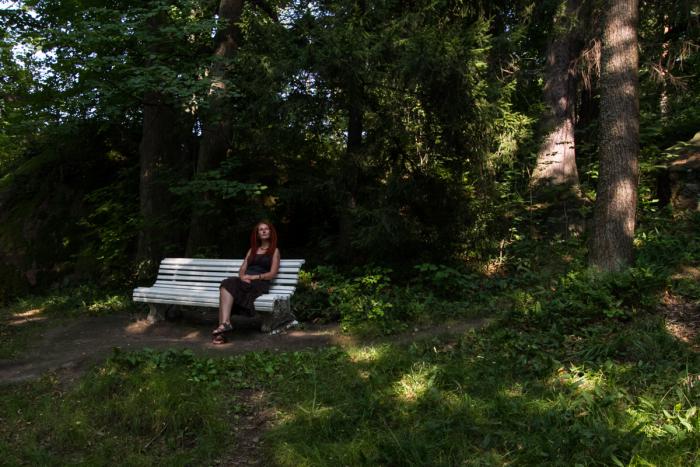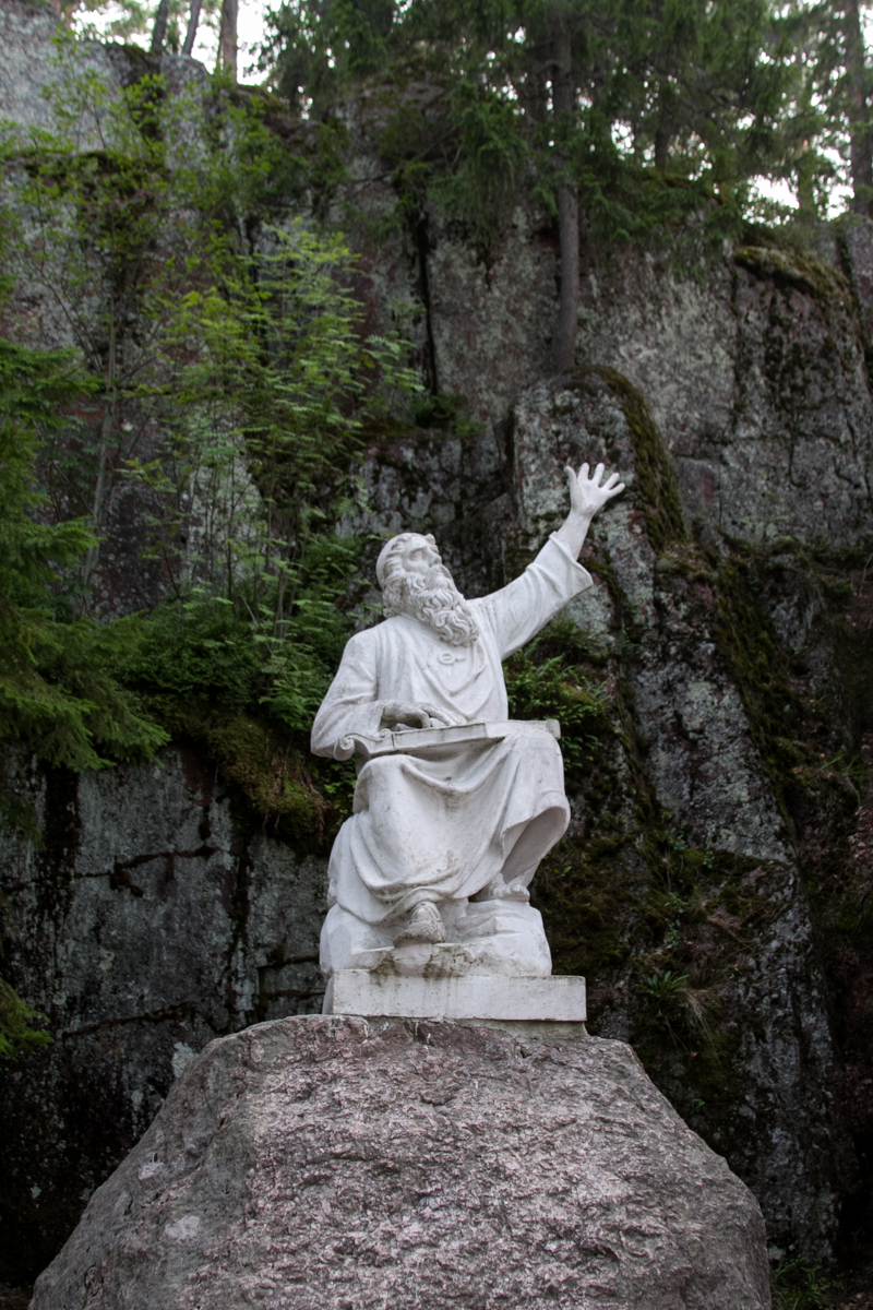 Природа парка стопроцентно Карельская, Питерская немного другая, и в подтверждение моих мыслей на центральной аллее парка сидит статуя Вяйнямёйнена с кантеле, и смотрит в море, в мечтах о Сампо.