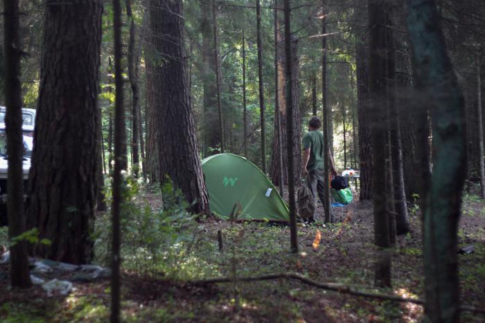 Первая наше правило на стоянке – не портить природу, лучше не развести костер, чем пилить деревья, мы кочевники, мы не обустраиваем здесь жизнь, мы не переделываем это место под свои нужды, так пусть оно остаётся первозданным. Конечно, приспособиться под среду иногда намного сложнее, чем менять её топором и лопатой, но … хватит слов, просто, не надо так!