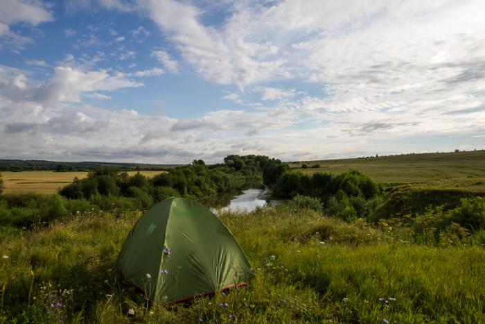 В семидесяти километрах от Казани, потыкавшись по склонам, нашли уютное и уединенное место на реке Меша,