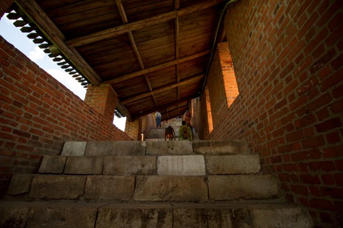 огромные ступенищи Нижегородского кремля внутри стены,