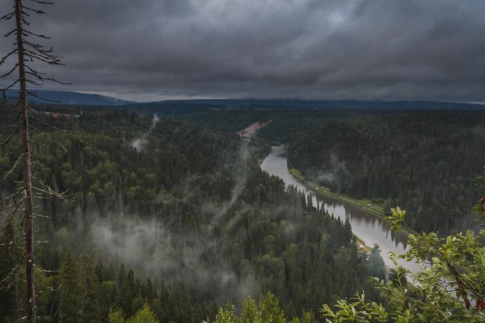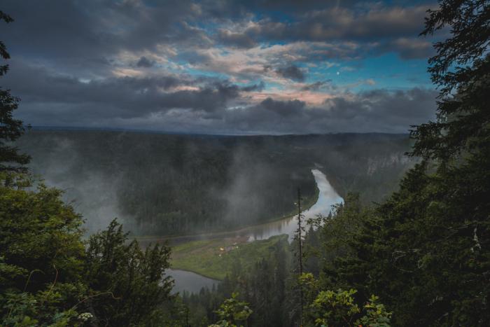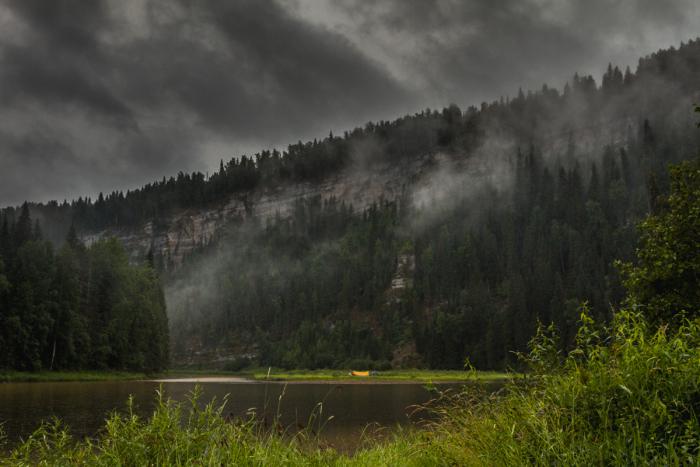 Проснулись мы с Аннике в полпятого по Москве, и взглянув на туманную красоту вокруг пошли на Ермак Камень. Парма, ворота Урала, открылись нам необычайным спокойствием и даже какой-то иллюзорностью картинки.