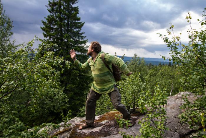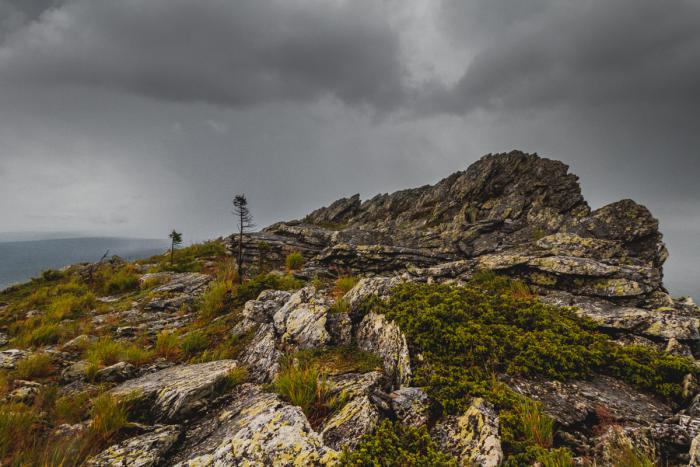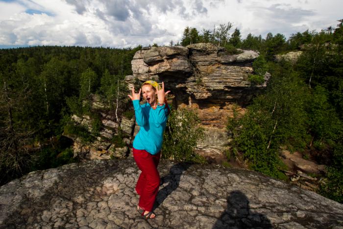 Погода для подъема не выдала ничего нового, за эти несколько дней мы уже обвыклись, Средний Урал – это туман и дождь, не ту часть света назвали Туманным Альбионом. Подъем на столбы крутой, в дождь, я бы даже сказал, категорийный, под ногами всё бесконечно скользит, и это только подъем, я предвкушал спуск. По дороге перекусываем дикой малиной и черникой, мокрые, уставшие, но довольные мы взбираемся на вершину, связываемся с пожелавшим остаться в лагере Максом по рации и пускаем сигнальную ракету. Вот мы и на крайней точке запланированной разведки на Средний Урал, нас ждет длинный перегон и вторая, не менее интересная, но гораздо более изученная часть маршрута — Север.