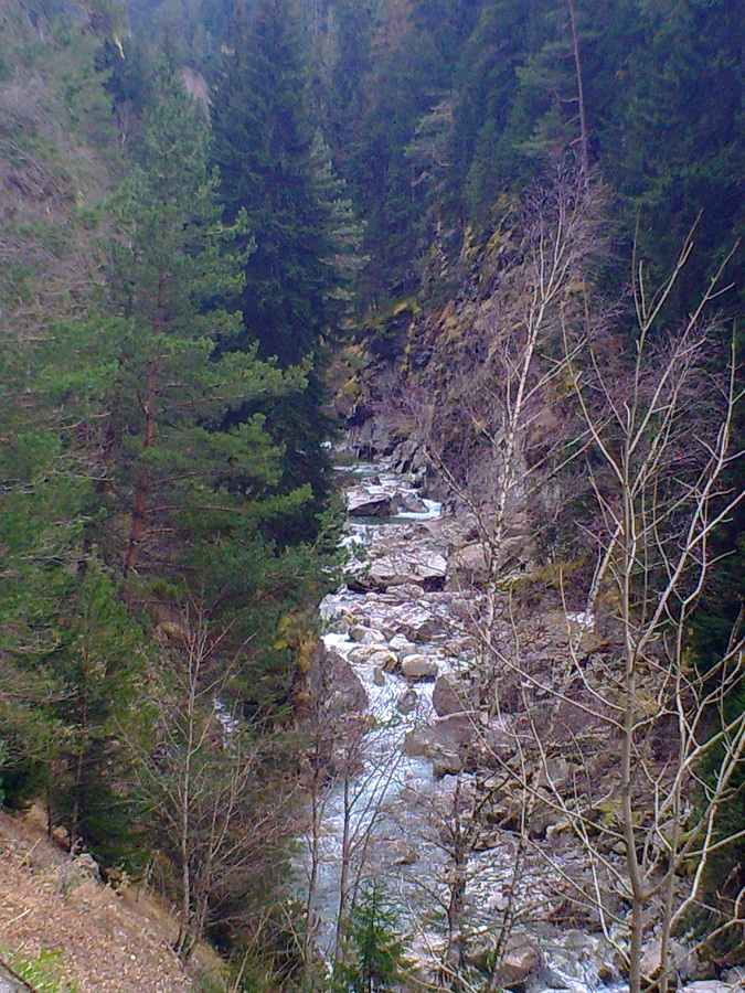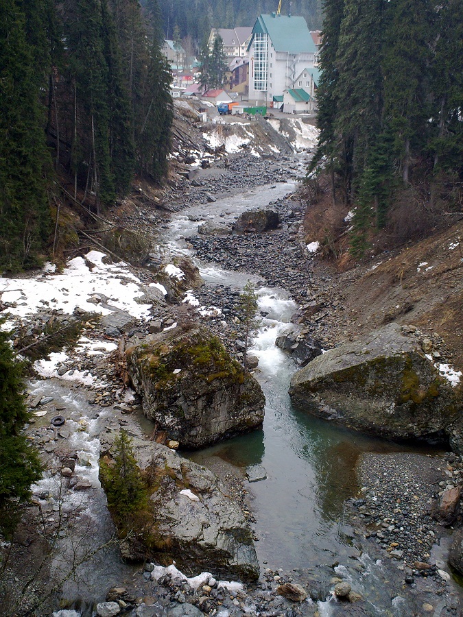 Туда шли по языку лавины, проваливались по пояс в снег, но все-равно было весело и не холодно. Назад уже шли почти прямо по реке, вода показалась теплее, чем окружающий воздух… Видели, как сходили две небольшие лавинки…